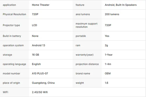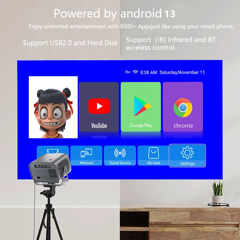 High Quality A10 200ANSI Android 13 Smart Home Projector - Dual WiFi 3D Outdoor Advertising With Electric Focus Projector