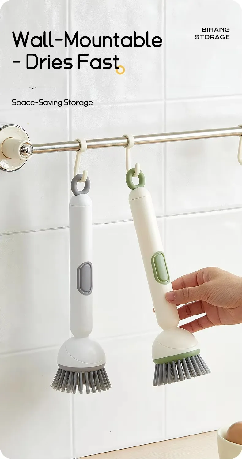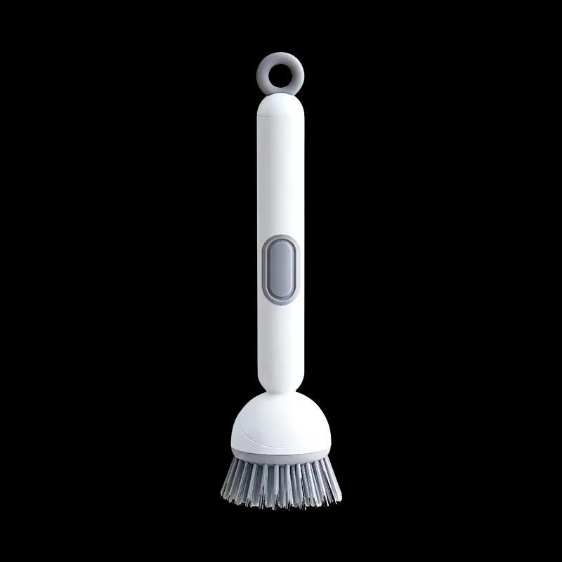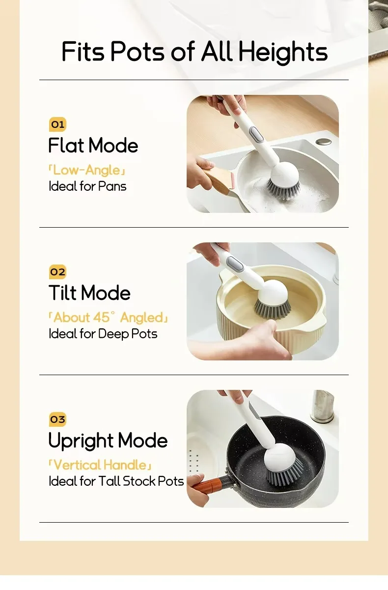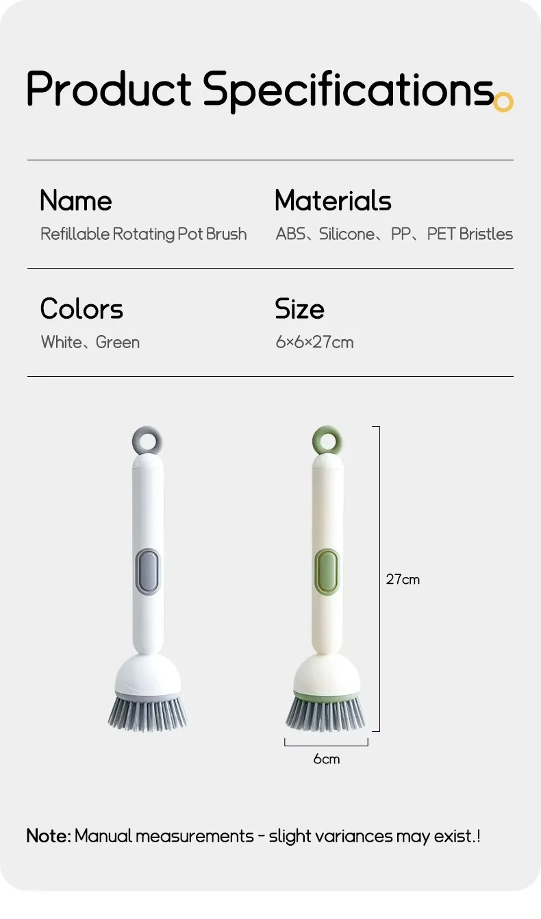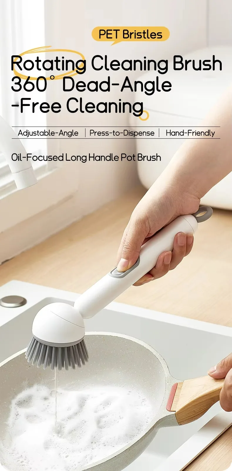 Long Handle Plastic Liquid-Adding Rotating Pot Brush Portable Kitchen Cleaning Brush Dishwashing Pot Cleaning Brush