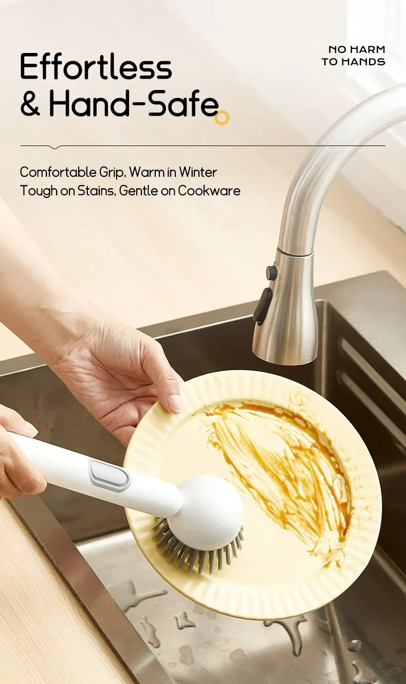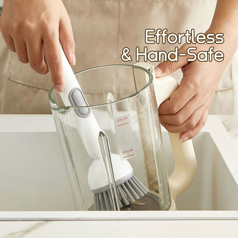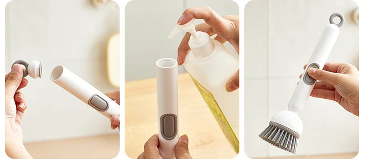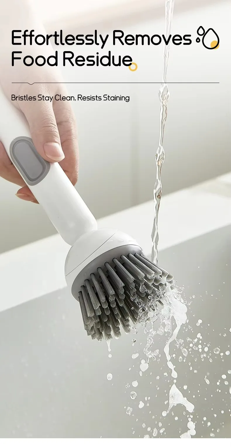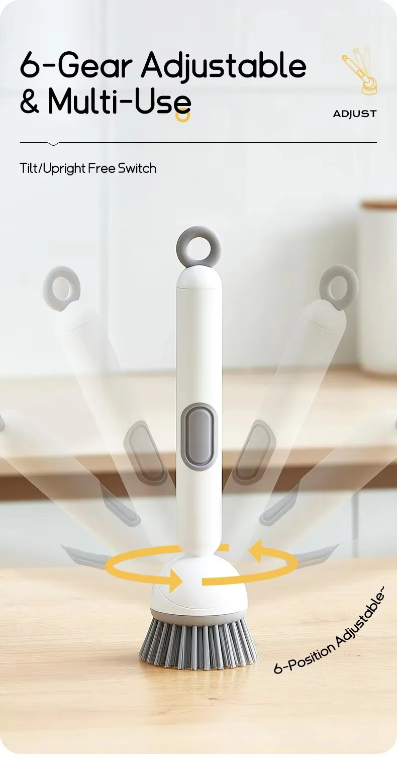 Long Handle Plastic Liquid-Adding Rotating Pot Brush Portable Kitchen Cleaning Brush Dishwashing Pot Cleaning Brush