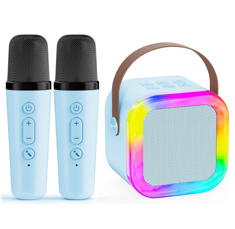 Lonvel K12 Mini 2 Mic Portable Gifts Kids Wireless Karaoke Speaker With 2 Microphones Karaoke Digital Key Control Blue Pink