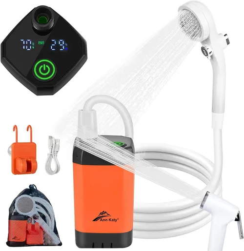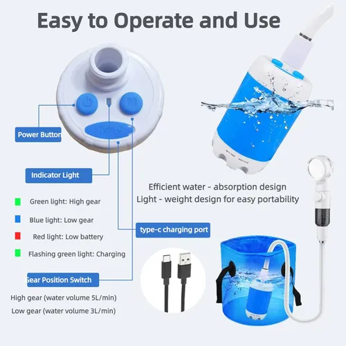 2. Long-Lasting Power: With a 4-5 hour fast charge and 60-70 minutes of runtime, this shower pump supports 2-3 people per charge. Ideal for group trips, it ensures everyone enjoys a warm, comfortable rinse.