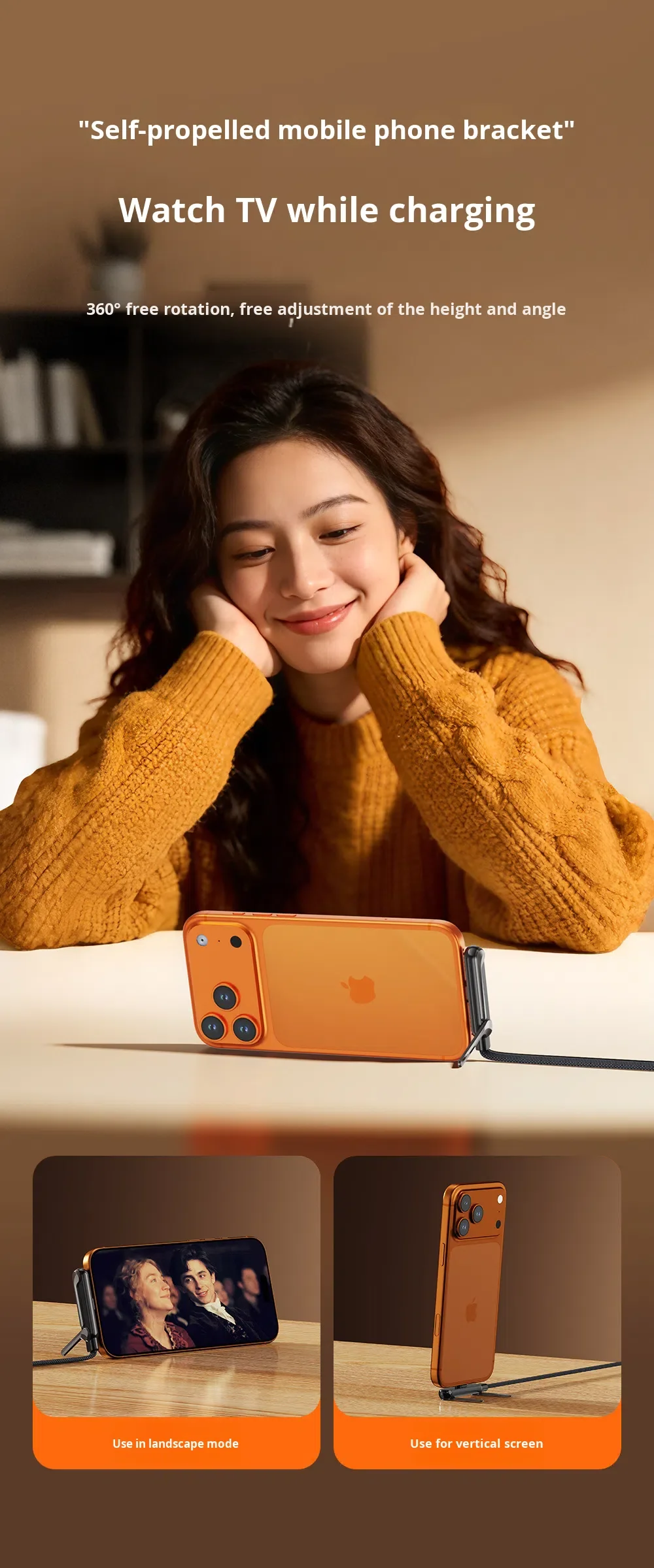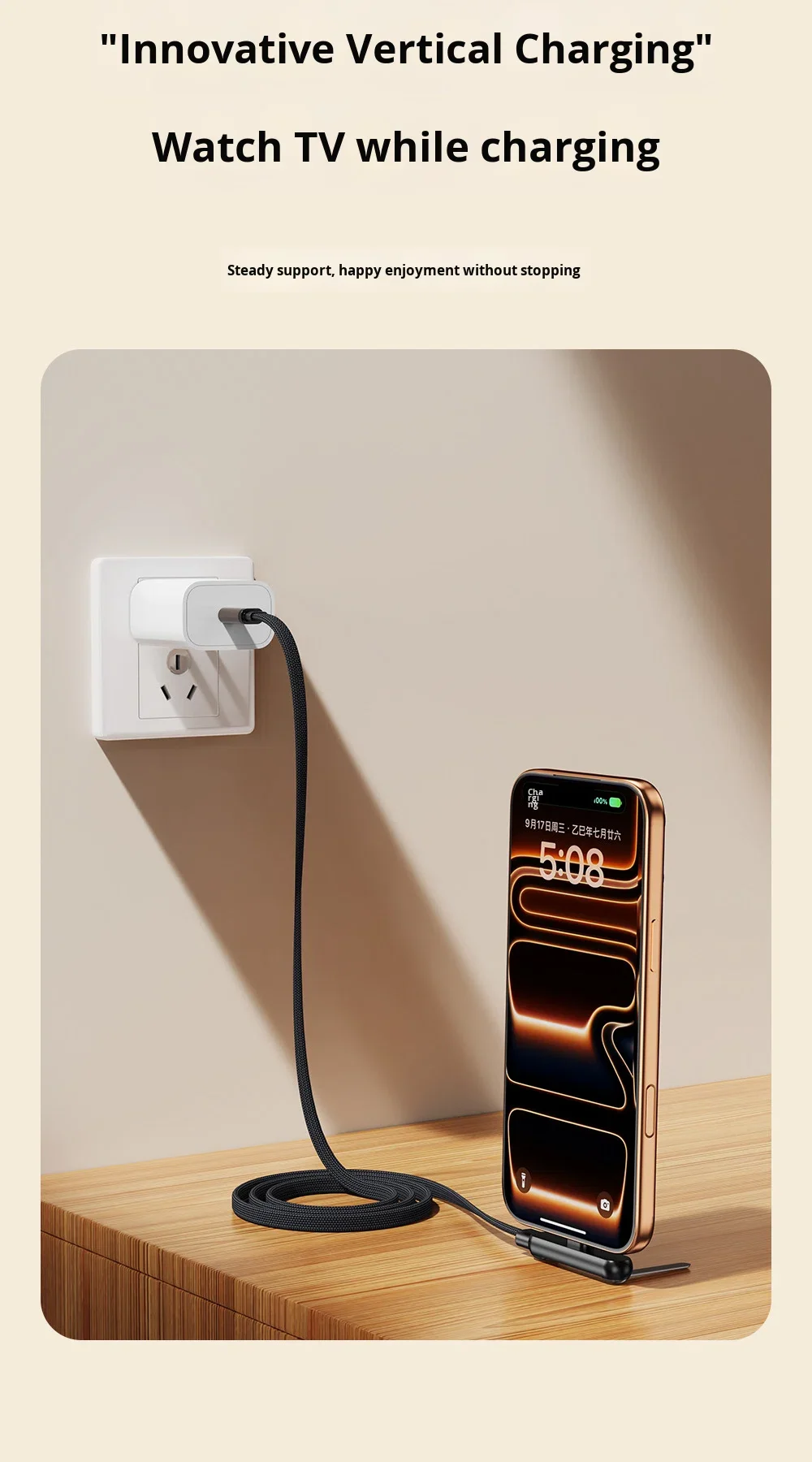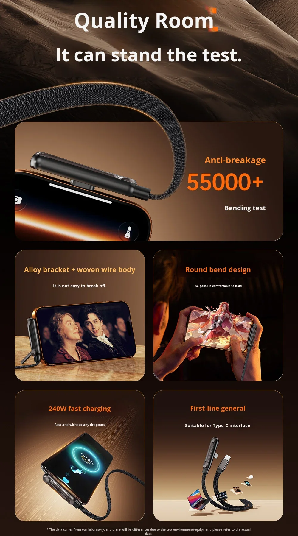 Hot Sale 240W Fast Charging Nylon Braided Cable with Phone Stand 90 Elbow 360 Rotation Multi-Angle Type-C for iPhone Gaming
