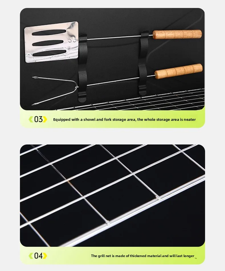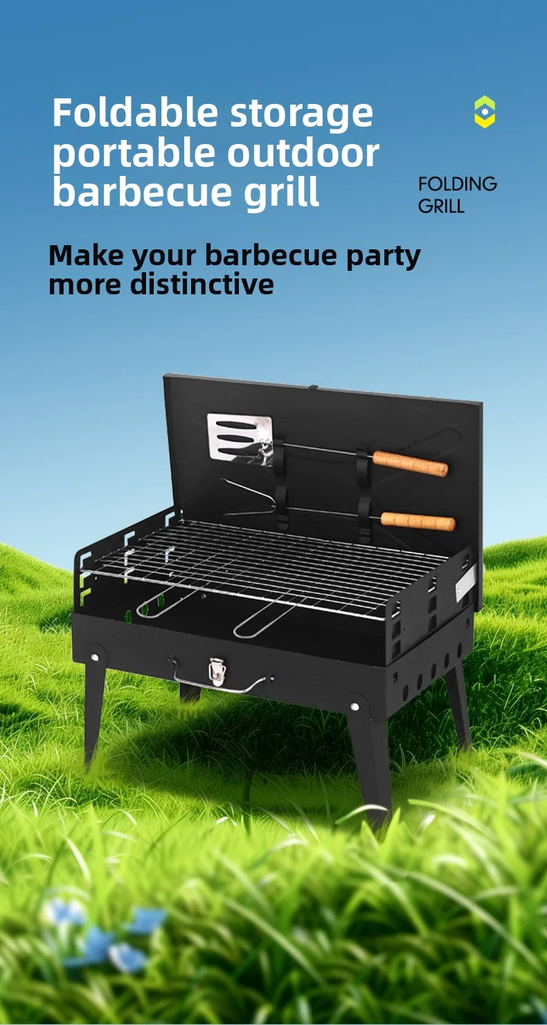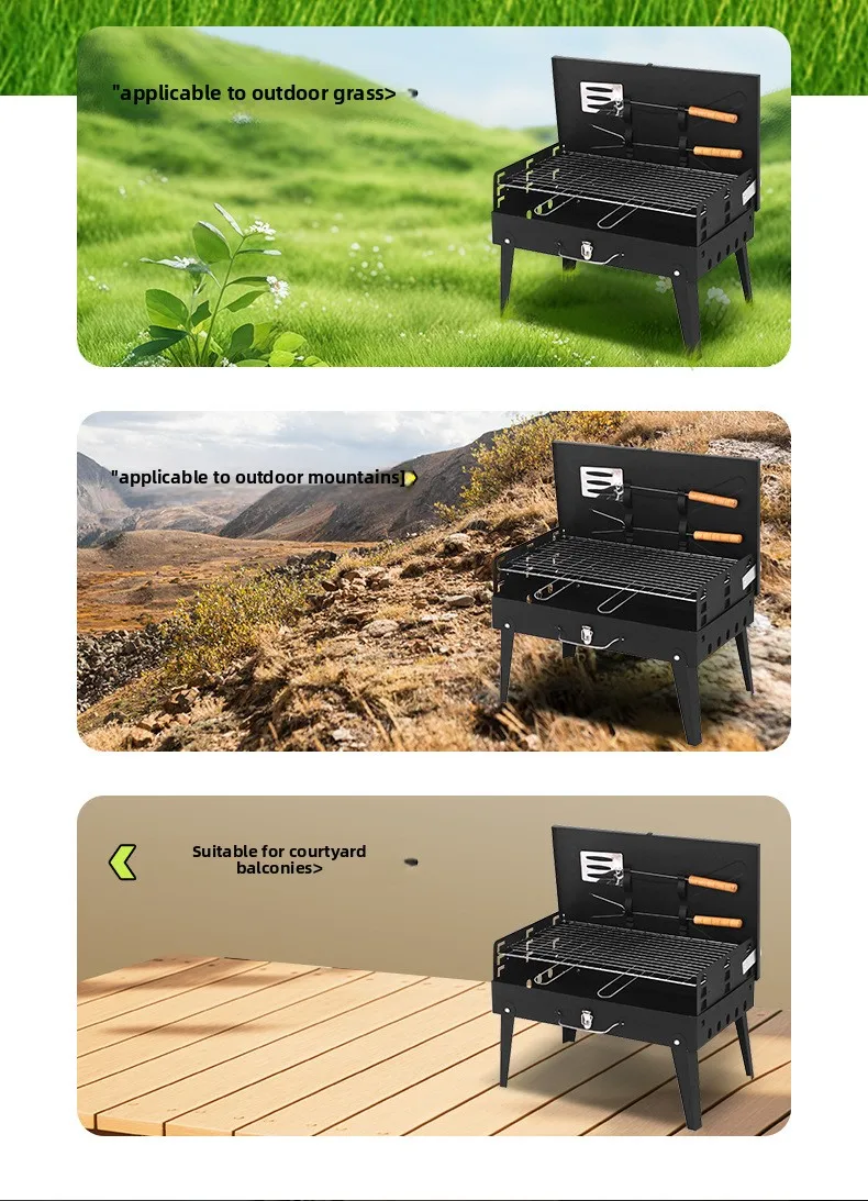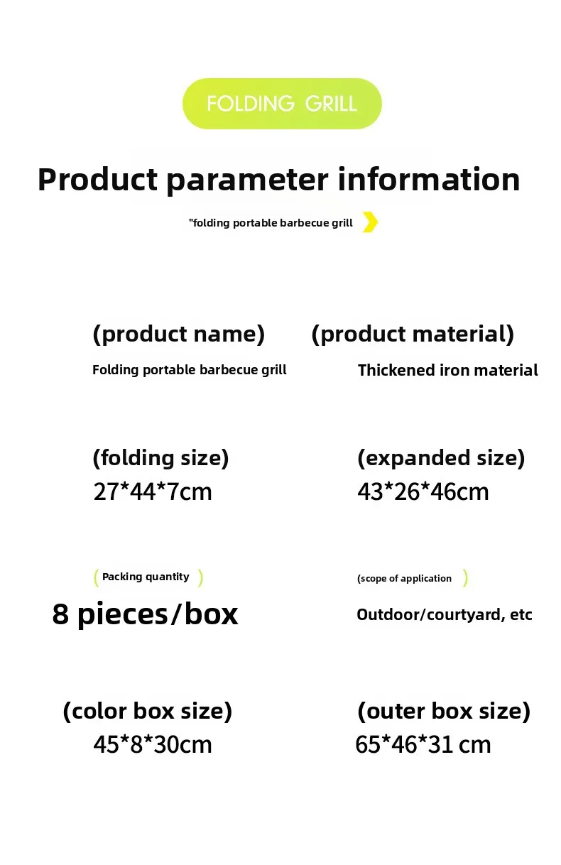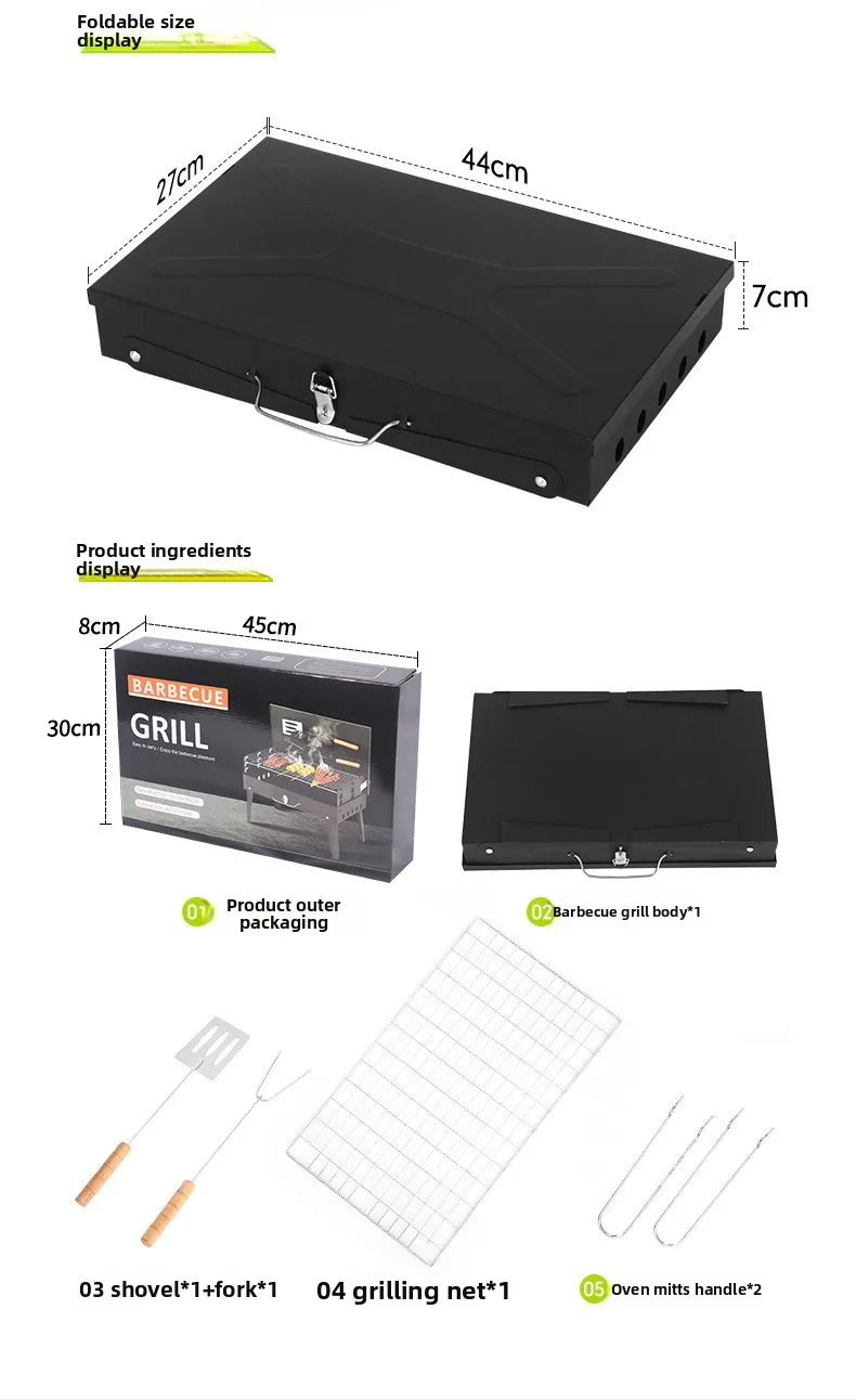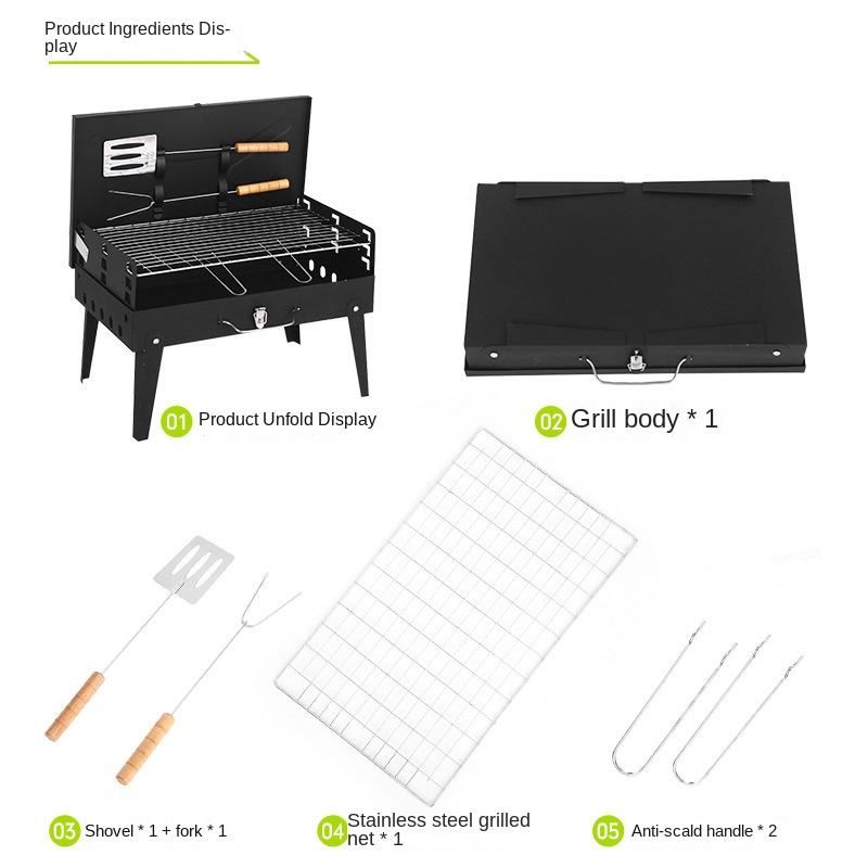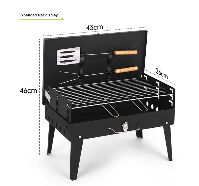 Product NameFolding Barbecue GrillColorBlackMaterialStainless Steel & IronSize43*26*46cmGrill TypeCharcoal GrillUsageOutdoor Cooking\Baking\BBQ