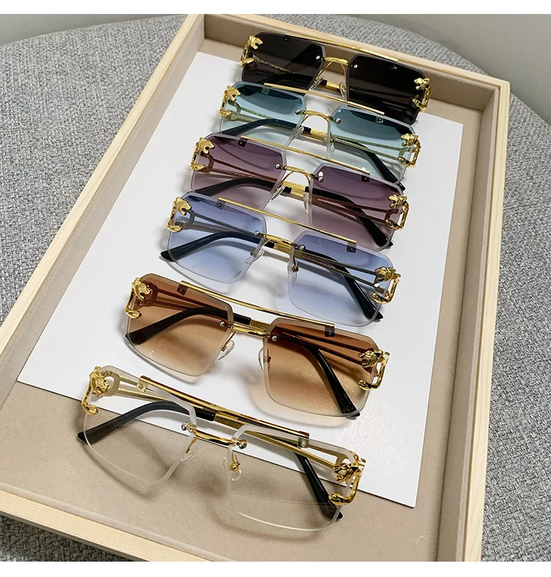 Wholesale Luxury Sunglasses Double Bridge Bevelled Lens UV400 Gradient Stylish Sun Glasses