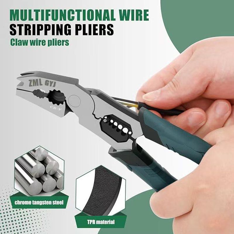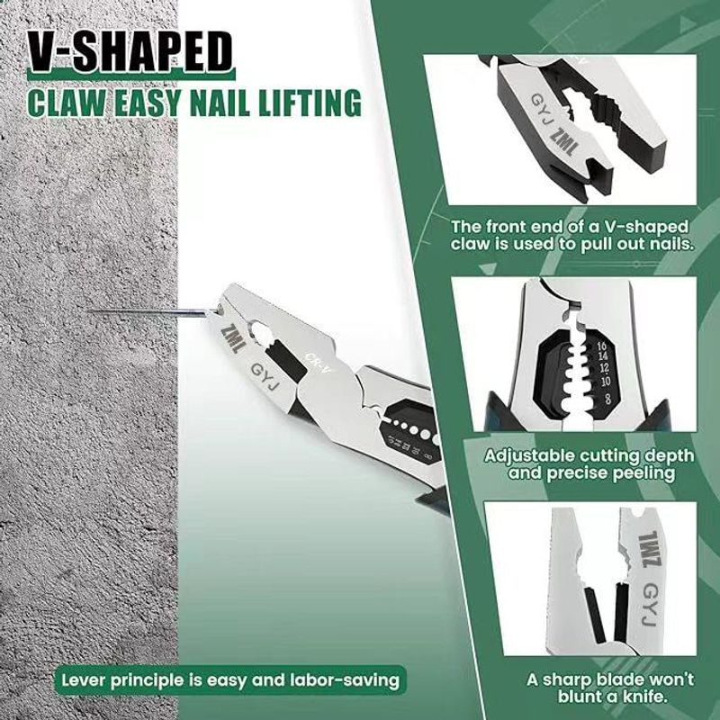 ·This pliers performs multiple functions: nail pulling, cutting, wire stripping, crimping, and screwing. 🛠️