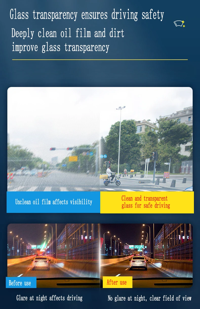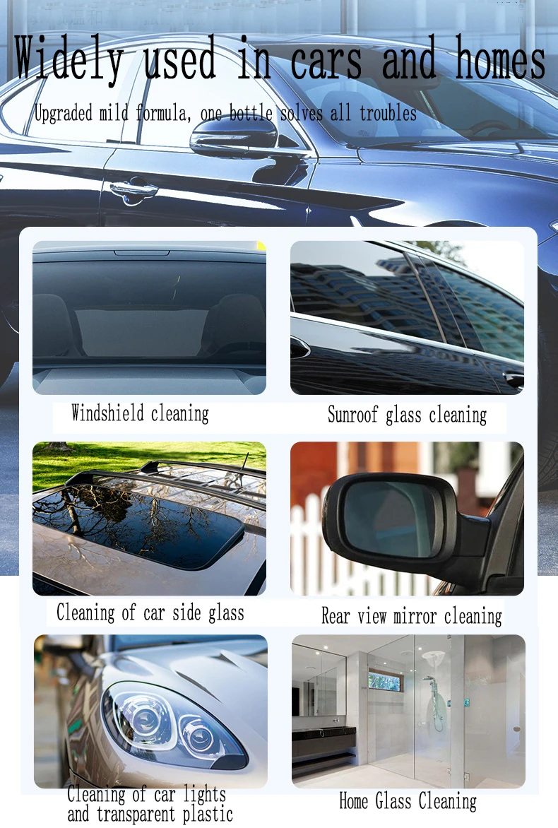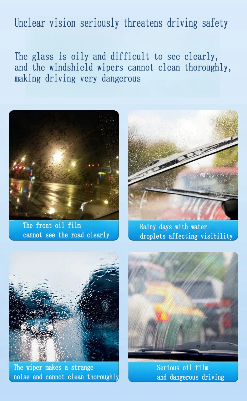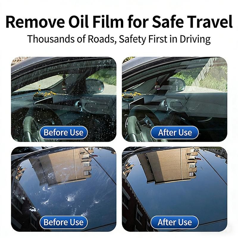 Car Oil Film Cleaning✨ Car Oil Film Cleaning is a must-have for your car washing and maintenance. It effectively removes oil film from glass surfaces, leaving them spotless and trace-free. The compact size makes it easy to carry on the go. 🚗Key Features·Glass Decontamination: Removes oil film from glass surfaces.·Fast Cleaning: Quick-acting formula for efficient cleaning.·Compact and Easy to Carry: Perfect for on-the-go use. 📦Product Details·Net Weight: 150ml.·Oil Film Removal Rate: 99.9%.·New and Old Packaging: Sent randomly. Please don't order if you mind. 📦Perfect for Your Vehicle
