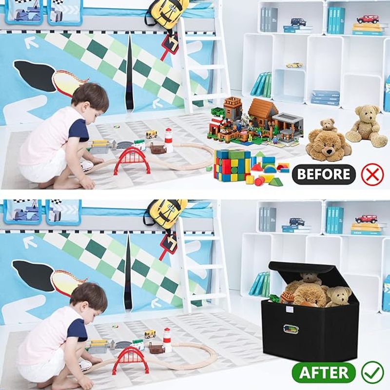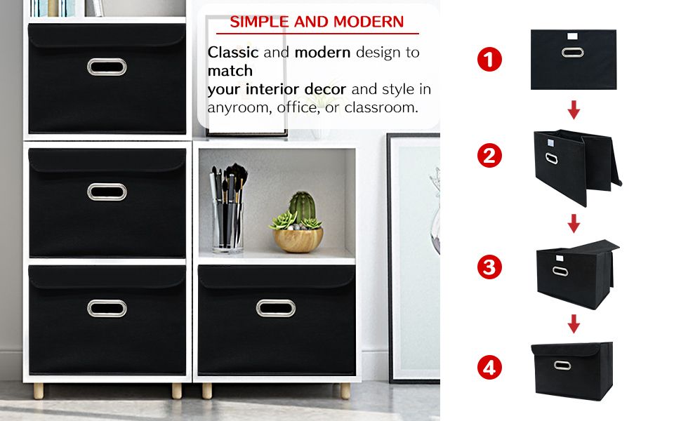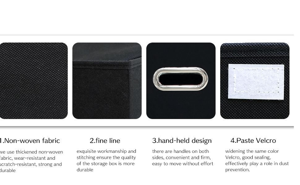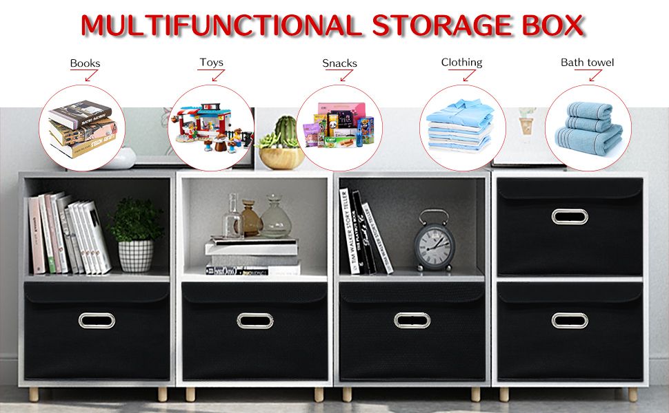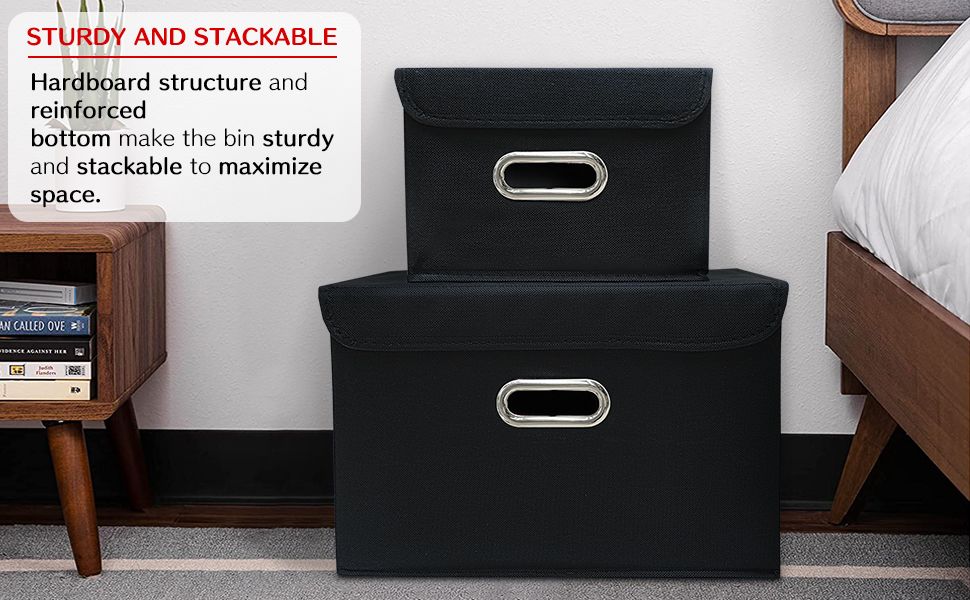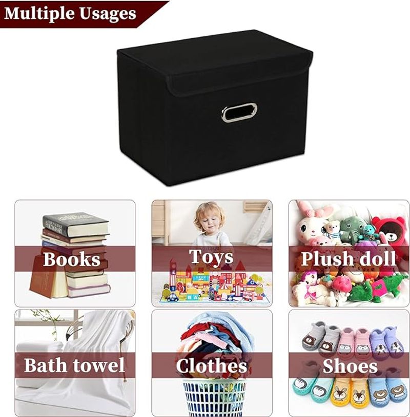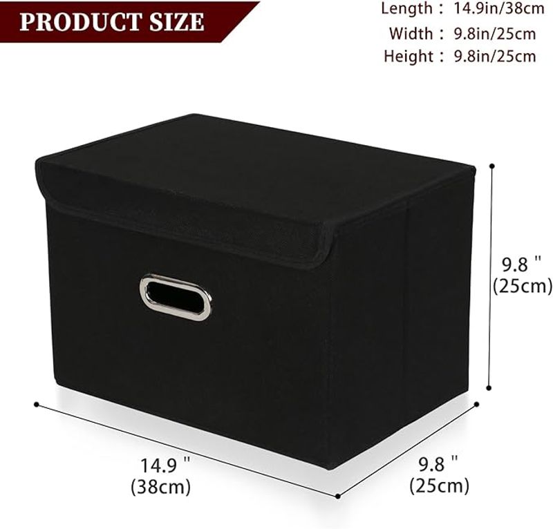 Fabric Storage Cube Bins Foldable Organizer Container Collapsible Basket with Lids and Metal Handles, for Home, Bedroom, Closet (Black, 3 Pcs)