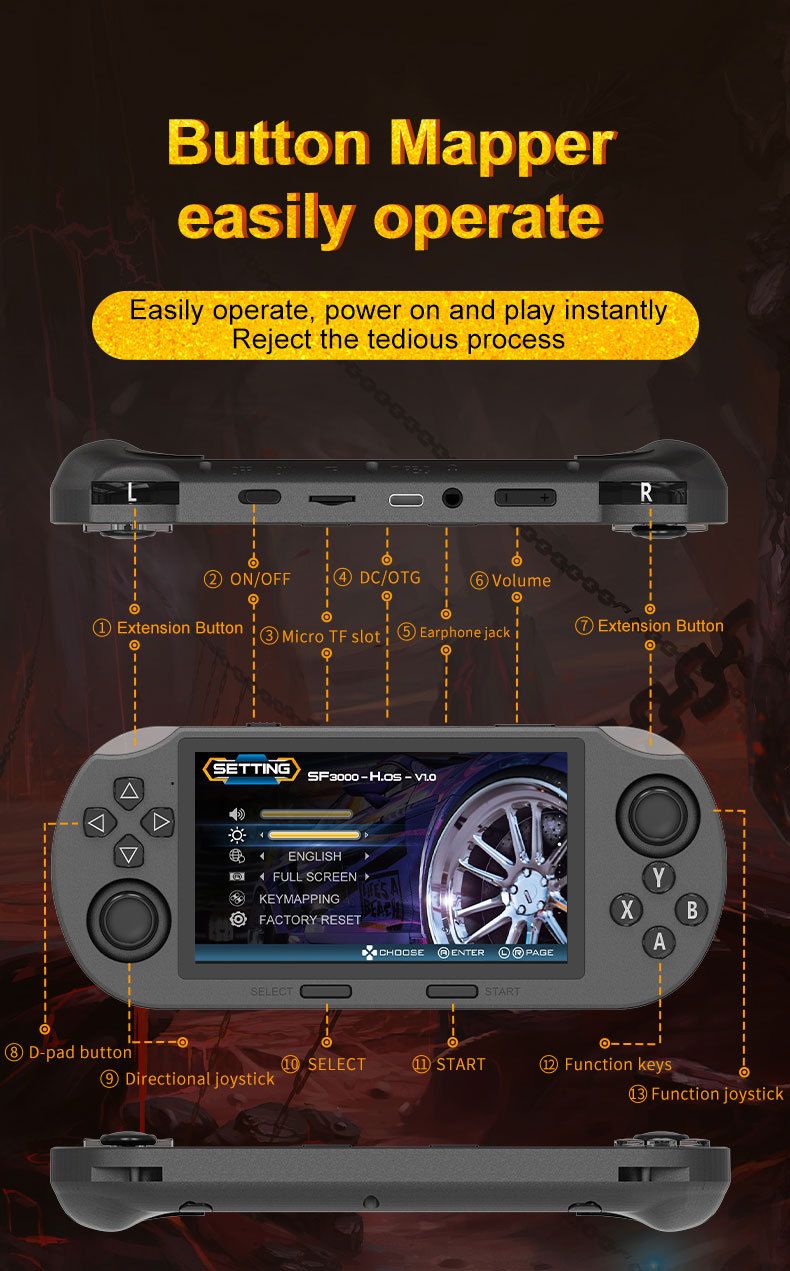 SF3000 Retro Handheld Game Console 4.5 Inch IPS Screen 30000+ Games 8-10 Hours Playtime Wireless Mini Portable Kids Gameboy Open